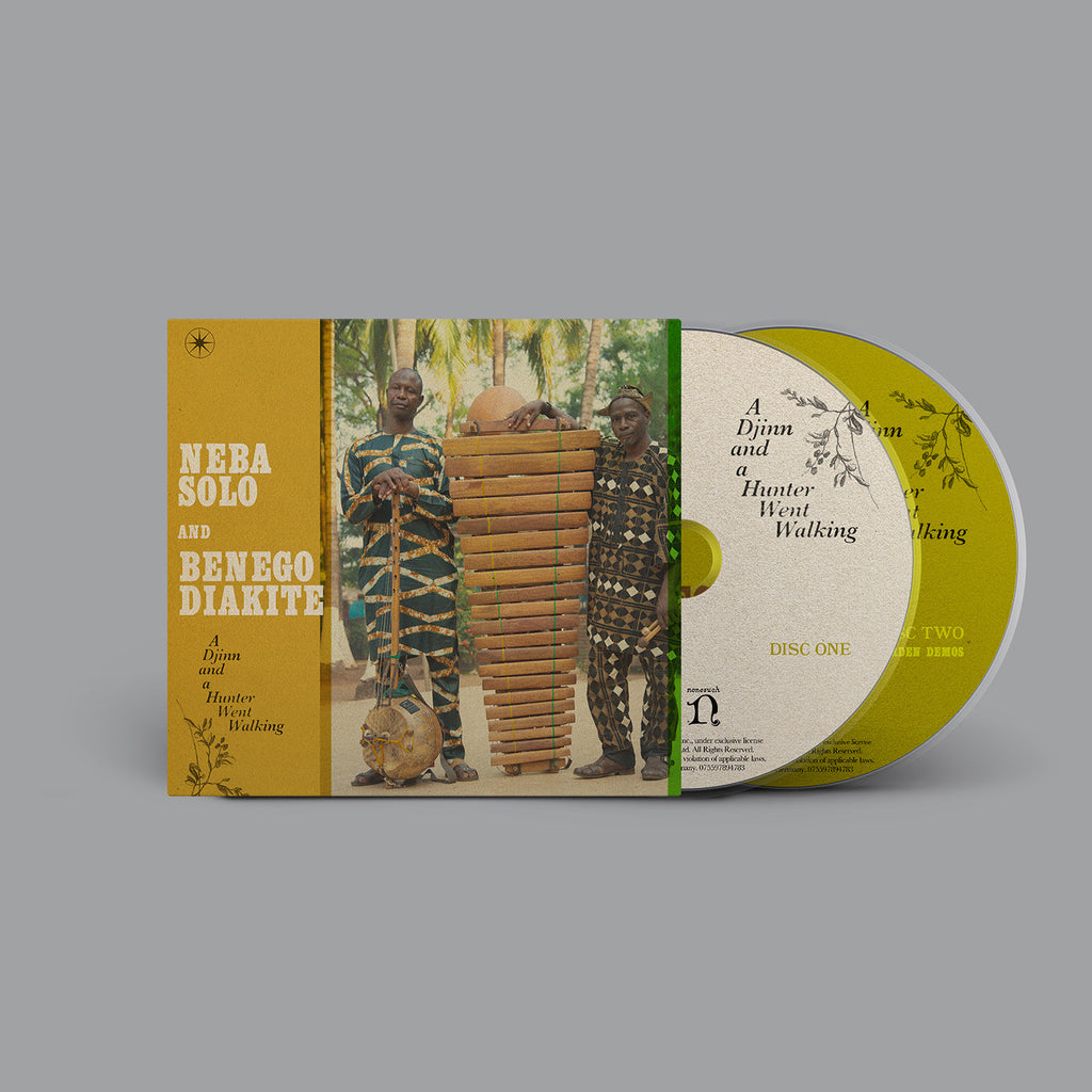 Malian balafon player Neba Solo and donso n’goni player Benego Diakité’s A Djinn and a Hunter Went Walking—the first in a series of new releases in collaboration with longtime Nonesuch partner Nick Gold, former head of World Circuit Records—features the leading players of their traditional instruments: the marimba-like balafon, or bala, and donso n’goni, a hunter’s harp. On the album, co-produced by Gold, Ousmane Haïdara, and Sonny Johns, the acoustic instrumentals are complemented by vocals and percussion as well as touches of mellotron, guitar, and strings. The CD version includes a second disc of their original duo performances, unadorned, recorded in a Bamako garden under a mango tree. They started after the sun went down, and crickets can be heard chirping during the quiet moments.